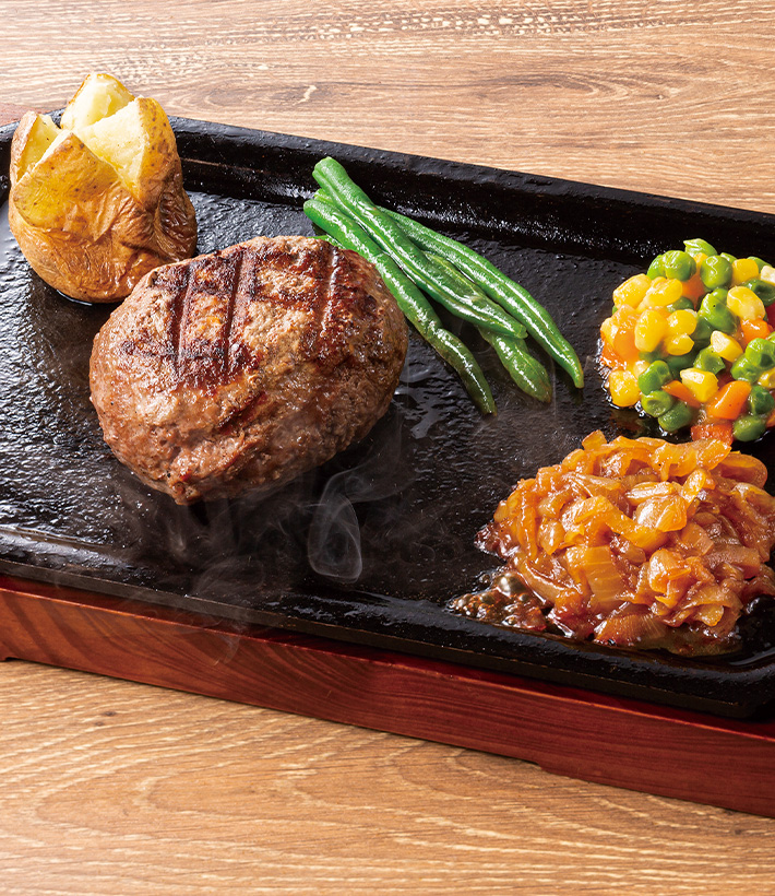 混ぜもの一切なしの牛肉100%、ごろんと肉を丸めただけのラグビーボール型のハンバーグを炭火で焼き、熱々の鉄板で提供するスタイル。 お客様の目の前でソースをかけ、最後の仕上げをおこなう、その“ジュッ ジュッ ジュワ~”とソースがはね、 シズル満点のハンバーグこそ『ハングリータイガー』のオリジナルだったのです。現在日本中でよく見られる、このハンバーグのスタイルの正真正銘の『元祖』はハングリータイガーなのです。【ハングリータイガー公式サイトより】